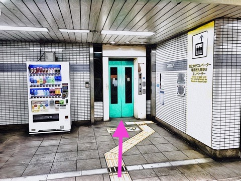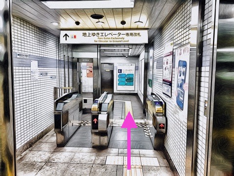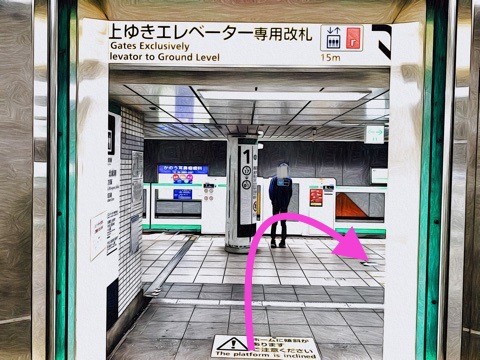 8号車1番扉(先頭から3両目)付近のエレベーターで改札階へ