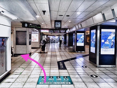 10号車4番扉(先頭から1両目)付近のエスカレーターで改札階へ