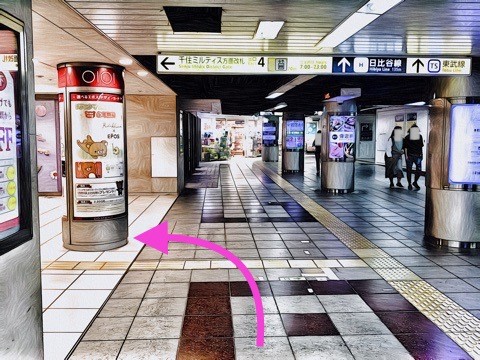 10号車4番扉(先頭から10両目)付近のエスカレーターで改札階へ