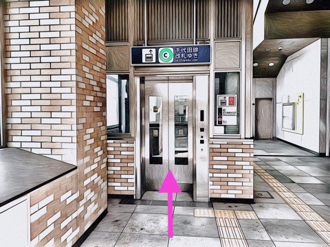 出入口1のエレベーターで改札階へ