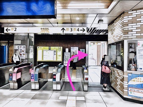 エスカレーターを降り右にある改札へ