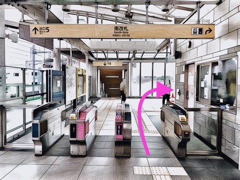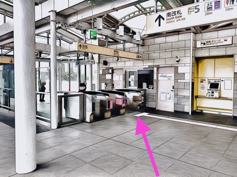 10両編成:3号車4番扉(先頭から8両目)付近から改札へ