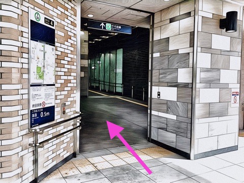 出入口4から通路を進む