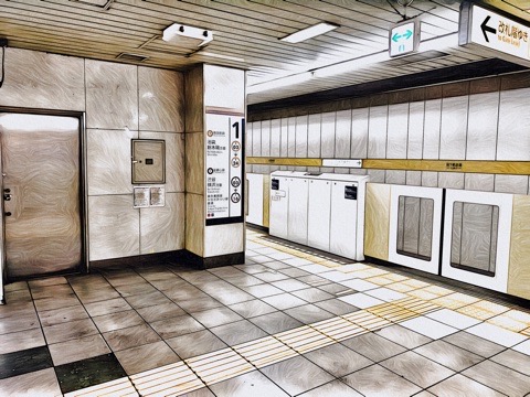 右の1番線が渋谷方面行きホーム(8両編成:6号車2番扉/先頭から3両目、10両編成:6号車2番扉/先頭から5両目) ※ただし有楽町線 新木場方面行きもあり