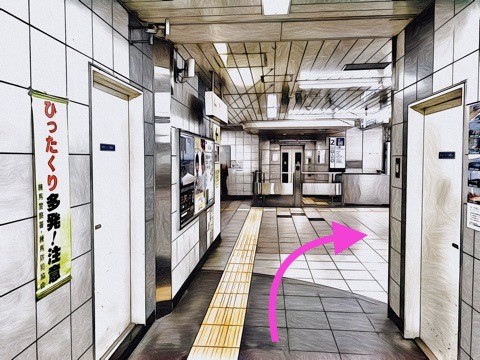 前方の改札を入る