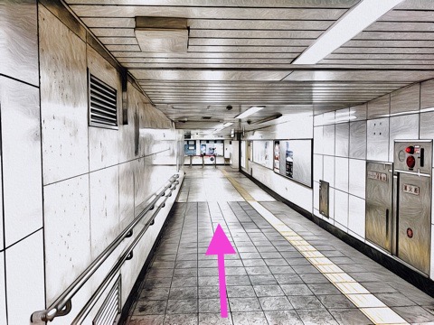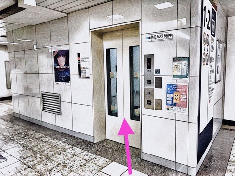 出入口3の後方にあるエレベーターへ