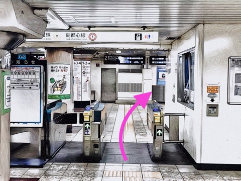 改札を入り右前方へ