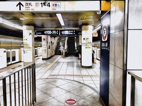 右の1番線が新木場方面行きホーム(6号車1番扉/先頭から5両目)