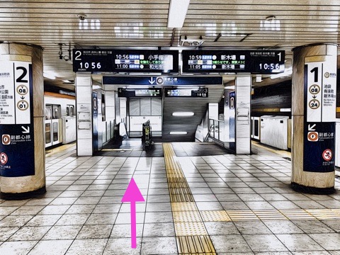 左の4番線が和光市方面行きホーム(8両編成:2号車2番扉/先頭から2両目、10両編成:2号車2番扉/先頭から2両目)