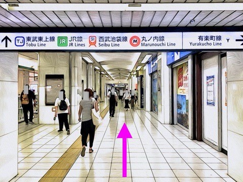 6番線が和光市方面行きホーム(8両編成:6号車4番扉/先頭から6両目、10両編成:8号車4番扉/先頭から8両目)
