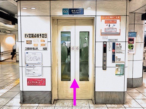 改札を入り前方のエレベーターへ