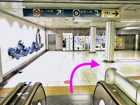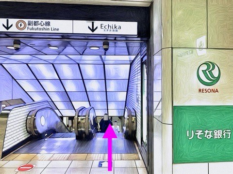 エスカレーターを降り右へ