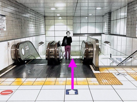 前方のエスカレーターへ
