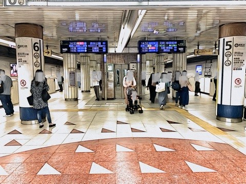 5番線が渋谷方面行きホーム(8両編成:7号車1番扉/先頭から2両目、10両編成:9号車1番扉/先頭から2両目)