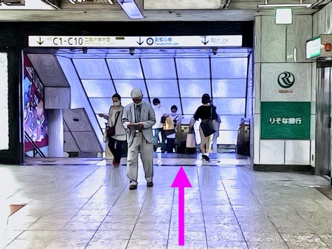 一番右の改札を入り右前方へ