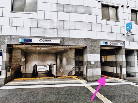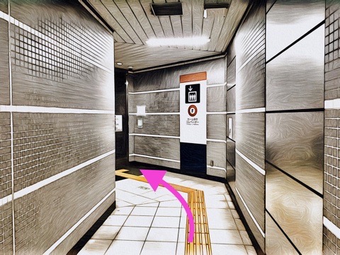 出入口2のエレベーターへ