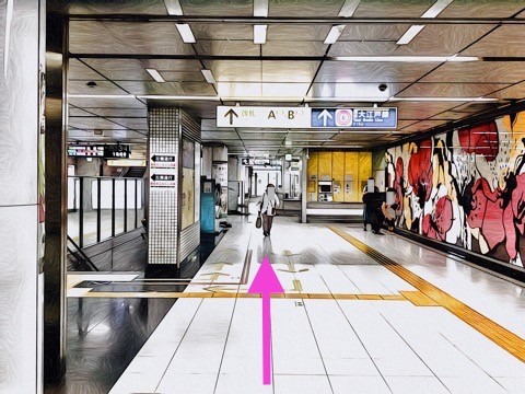前方の改札へ