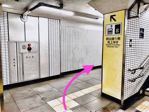 前方のエレベーターへ