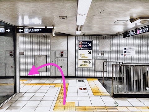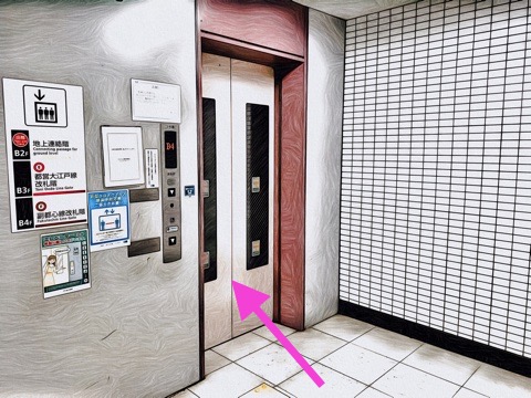 出入口B2のエレベーターで下の階へ