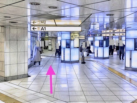 8両編成:3号車2番扉(先頭から6両目)、10両編成:5号車2番扉(先頭から6両目) 付近のエレベーターで改札階へ