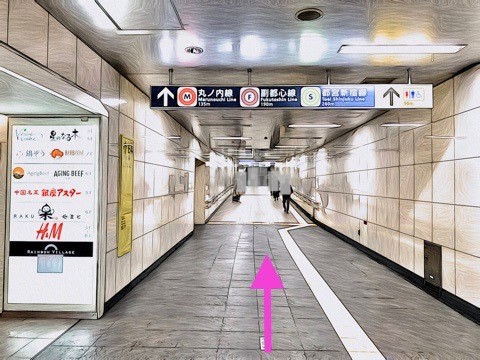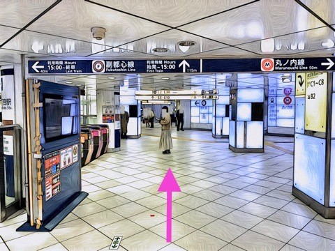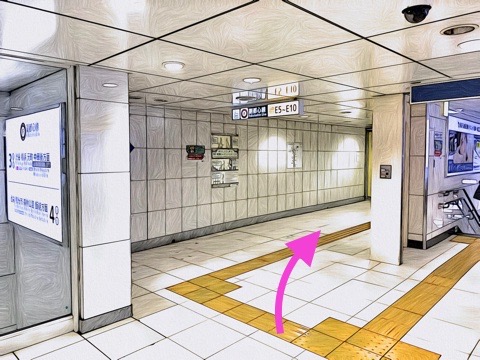 改札を入り前方へ