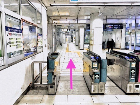 前方の改札へ