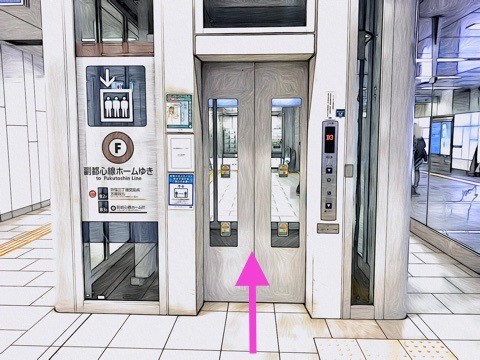 エレベーターで改札階へ