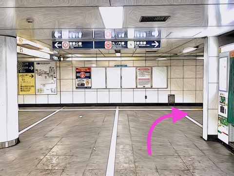 出入口E5のエレベーターへ