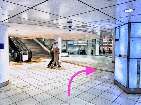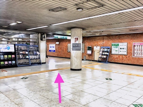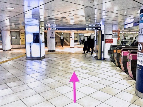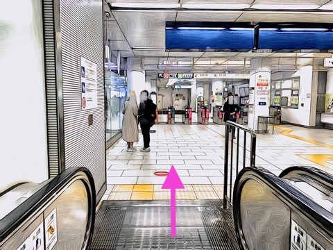 エスカレーターを降り前方の改札へ