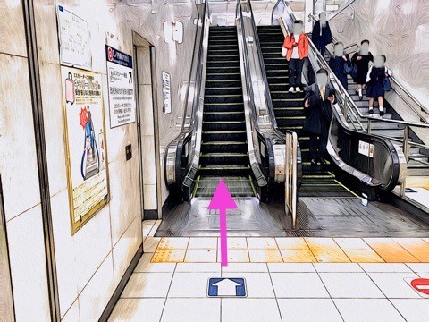 前方のエスカレーターへ