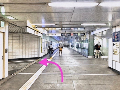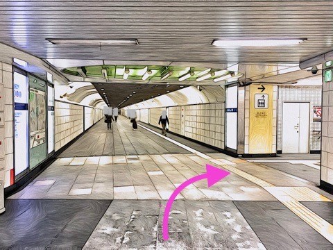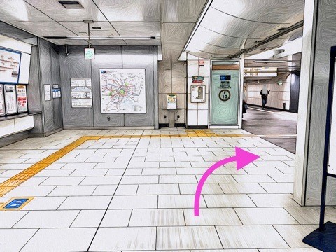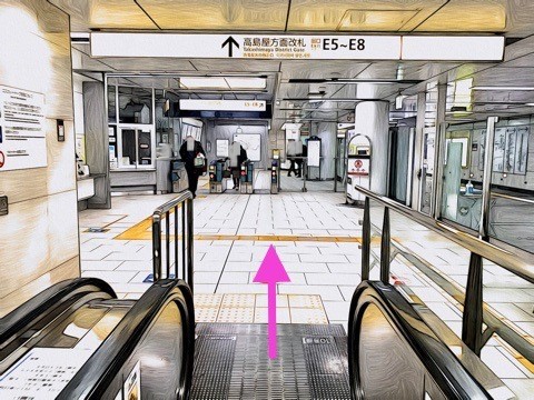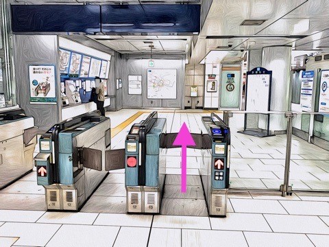 エスカレーターを降り前方の改札へ