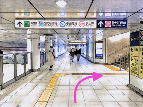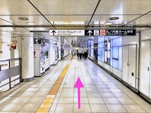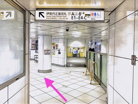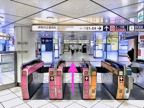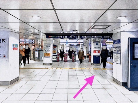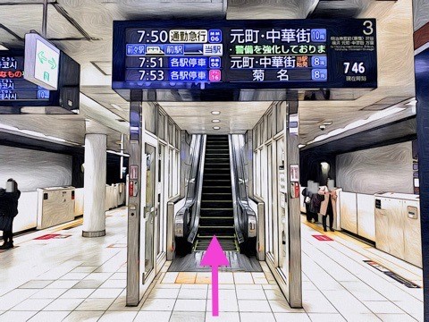 10両編成:1号車3番扉(先頭から1両目) 付近のエスカレーターで改札階へ