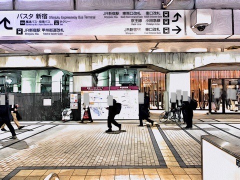 8両編成:8号車4番扉(先頭から8両目)、10両編成:10号車4番扉(先頭から10両目) 付近のエスカレーターへ