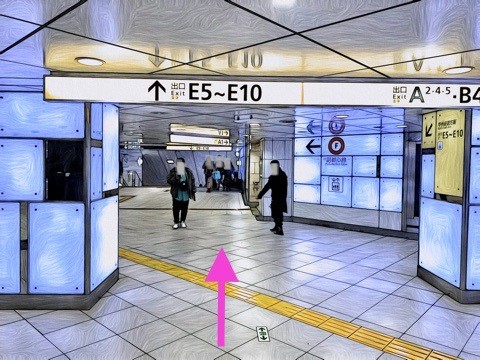 4番線が和光市方面行きホーム(8両編成:3号車2番扉/先頭から3両目、10両編成:5号車2番扉/先頭から5両目)