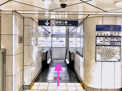 改札を入り右にあるエスカレーターへ