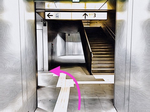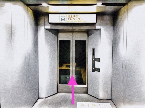 前方のエレベーターで地上へ