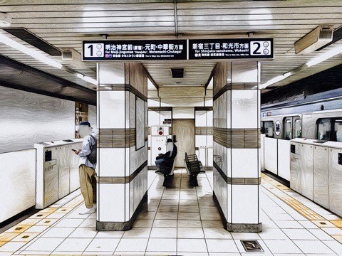 左の1番線が渋谷方面行きホーム(8両編成:7号車1番扉/先頭から2両目、10両編成:8号車1番扉/先頭から3両目)