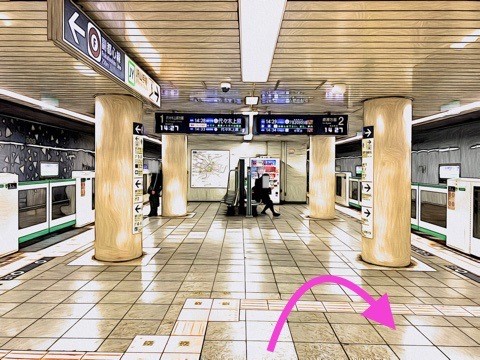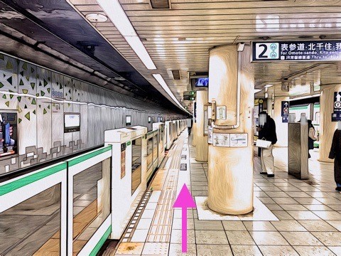 3番線が渋谷方面行きホーム(8両編成:5号車4番扉/先頭から4両目、10両編成:6号車4番扉/先頭から5両目)