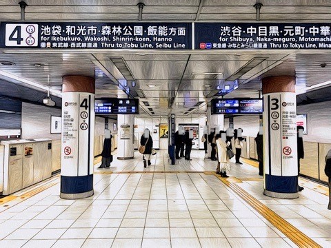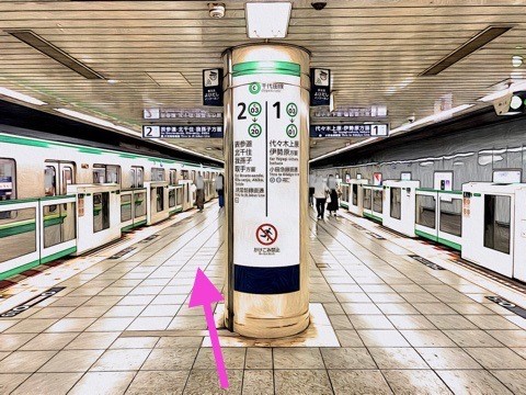3番線が渋谷方面行きホーム(8両編成:3号車3番扉/先頭から6両目、10両編成:4号車3番扉/先頭から7両目)