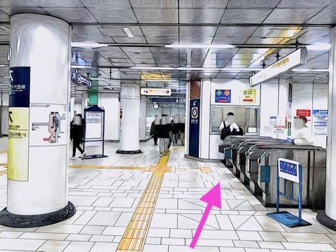 エレベーターを降り前方の改札へ