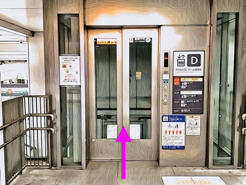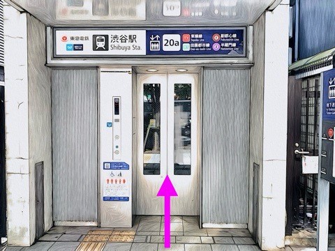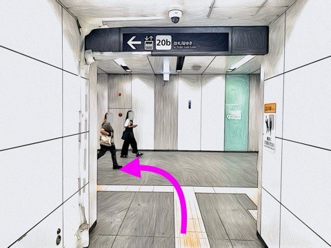 出入口20aのエレベーターへ
