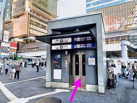 出入口21のエレベーターへ