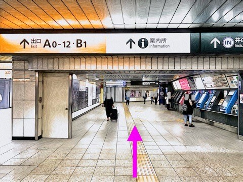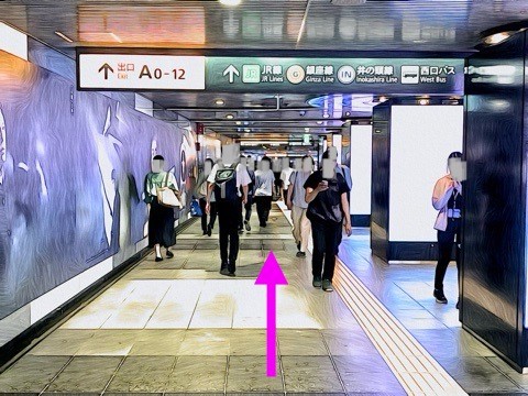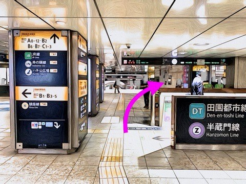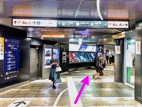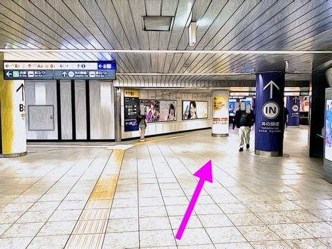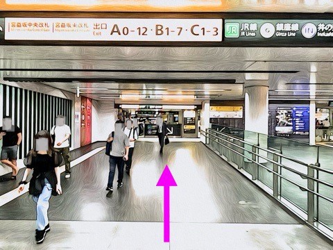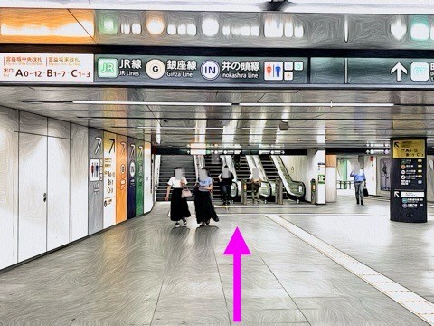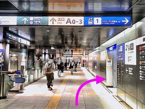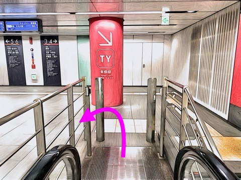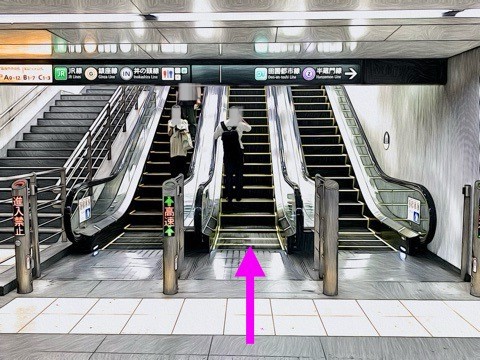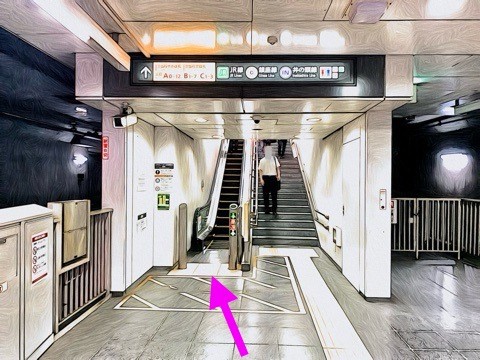 1号車1番扉(先頭から10両目)付近のエスカレーターへ