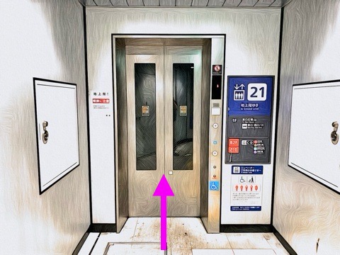 前方のエレベーターへ