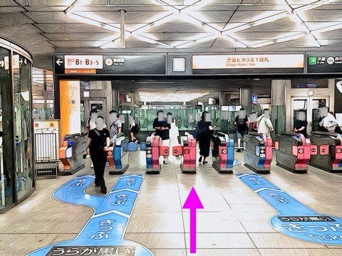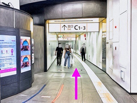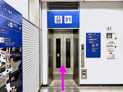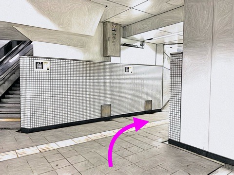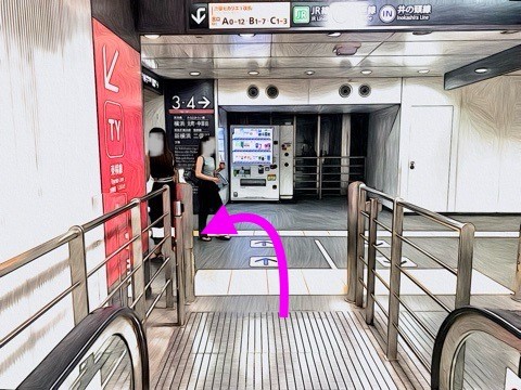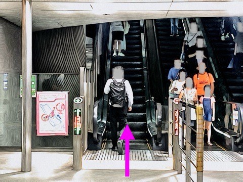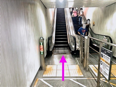7号車3番扉(先頭から4両目)付近のエスカレーターへ