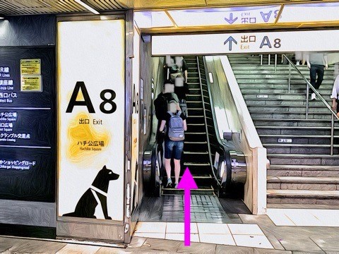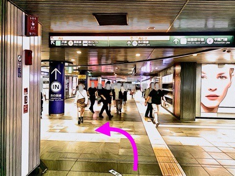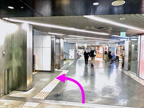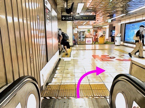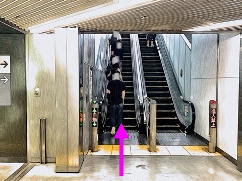 1号車1番扉(先頭から10両目)付近のエスカレーターへ