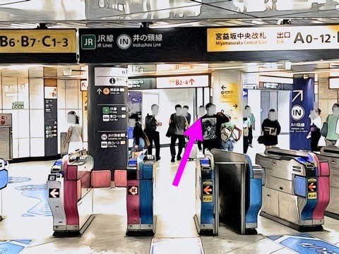 前方の改札へ