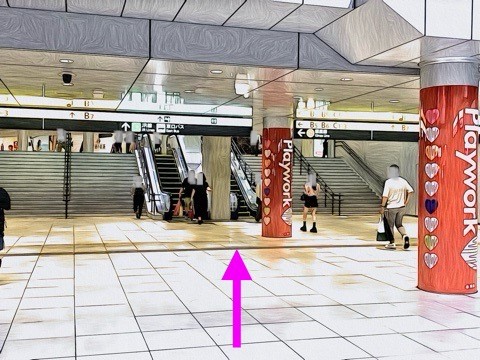 エスカレーターを降り前方へ