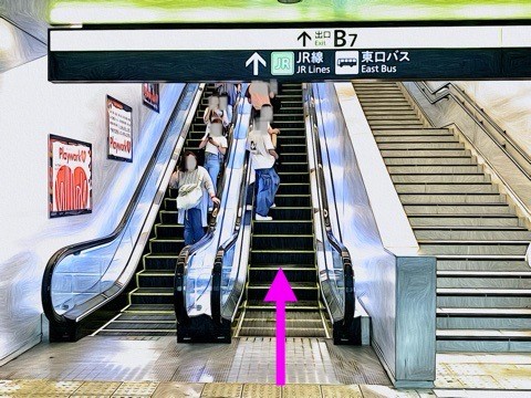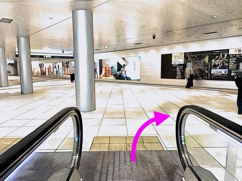 前方のエスカレーターへ