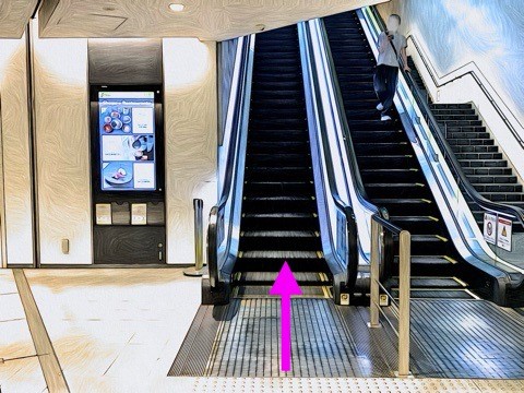 7号車3番扉(先頭から4両目)付近のエスカレーターへ